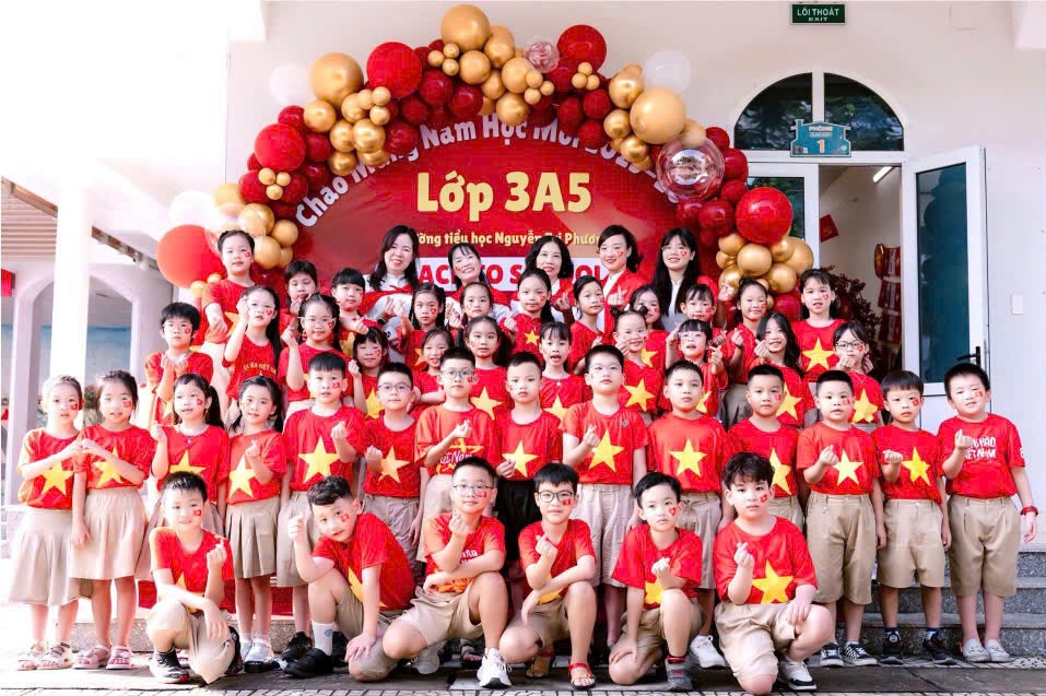 Với sự đồng hành đầy nhiệt tình của các bậc phụ huynh, lớp học 3A5 trở nên rực rỡ cờ hoa, bóng bay, trang trí lung linh như một lời chào mừng năm học mới. Đặc biệt, “Góc yêu nước” trong lớp đã gợi nhắc các em thêm trân trọng quá khứ hào hùng, thêm yêu lá cờ đỏ sao vàng đang tung bay kiêu hãnh.