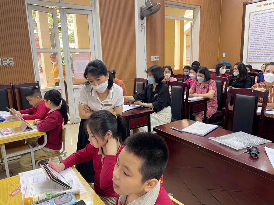 Tiết học diễn ra rất sôi nổi, các em học sinh tích cực học tập, tương tác, khai thác các tiện ích trên các thiết bị số, hứng thú tìm hiểu và thể hiện được kiến thức vô cùng “thông thái” dưới sự dẫn dắt và của cô giáo. Qua đó, các giáo viên có cái nhìn trực quan, cụ thể hơn các bước chuẩn bị, sử dụng tài nguyên, cách thức tổ chức các hoạt động, đưa ra những giải pháp toàn diện, sự đột phá trong việc tổ chức dạy và học nhằm đem lại những giờ học hiệu quả, tại các lớp.