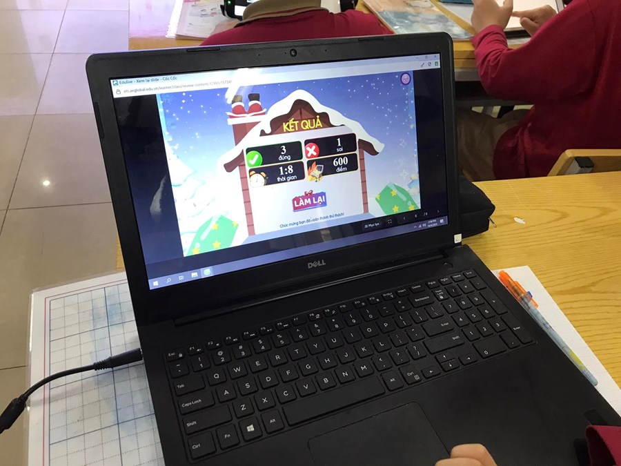 Ở pha trong giờ lên lớp, cô giáo đã tổng kết, thông báo các kết quả làm việc trước giờ học của HS, mô phỏng bằng sơ đồ hiển thị mức độ nắm bắt kiến thức, phân hoá đối tượng, kết hợp với việc dạy học trực tiếp, lựa chọn cung cấp kiến thức phù hợp với học sinh nhằm phát triển năng lực tự học. Mặt khác, thông qua các tài nguyên video, trò chơi học tập của hệ thống, ở phần vận dụng, cô giáo đã đưa thêm những bài toán tư duy song ngữ nhằm phát triển năng lực của học sinh đáp ứng nhu cầu hội nhập cho học sinh khi môi trường học tập ngày càng rộng mở.