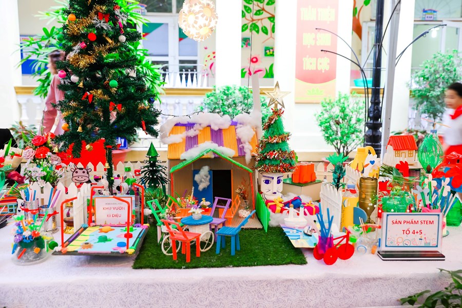 - Cùng chiêm ngưỡng lại các sản phẩm do chính các em tái chế lại từ các phế liệu và các đồ dùng bỏ đi.