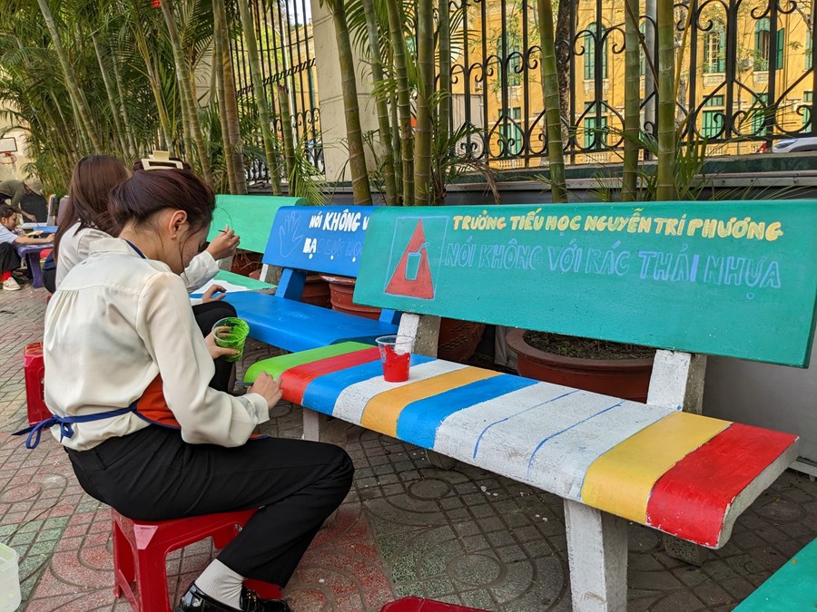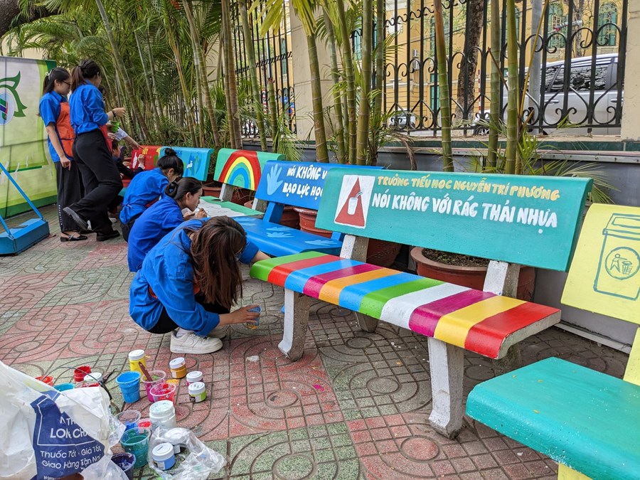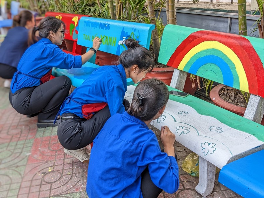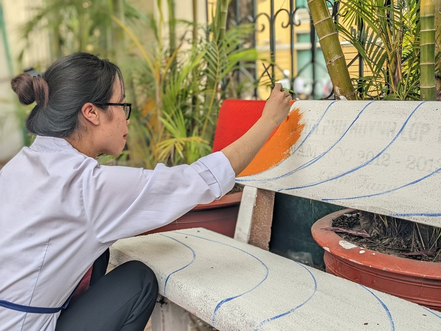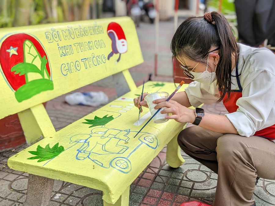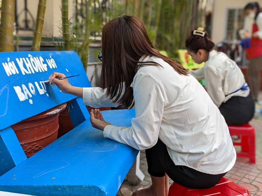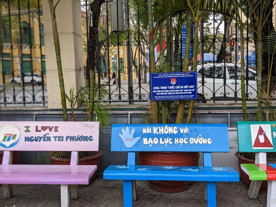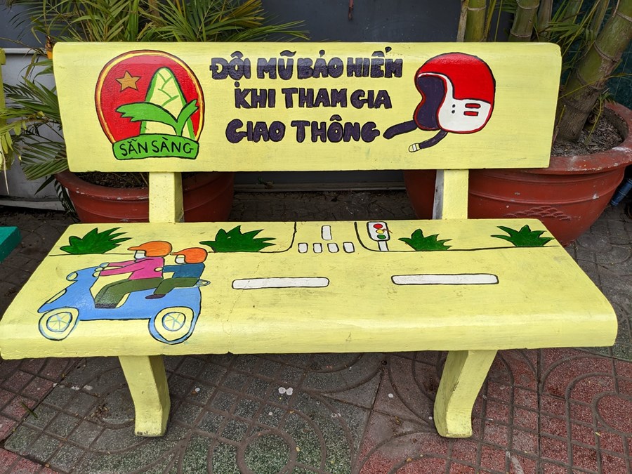 Trên những chiếc ghế đá, sau khi được khoác lên mình chiếc áo mới, cũng mang theo đó rất nhiều những thông điệp ý nghĩa tới các em học sinh, các thầy cô giáo và các bậc phụ huynh./.