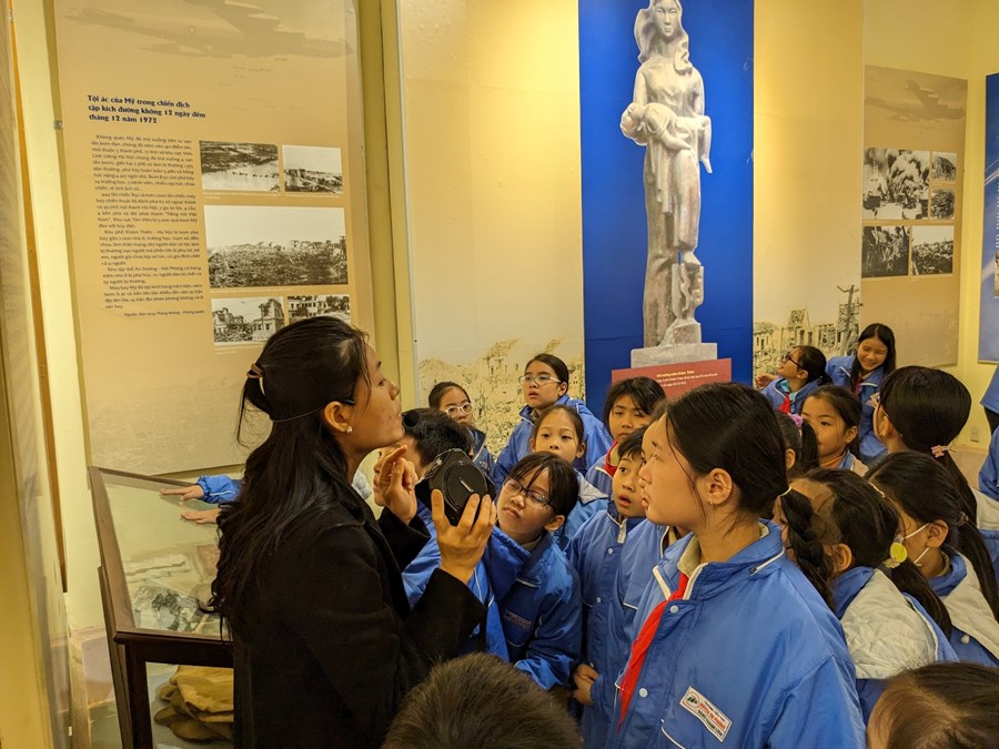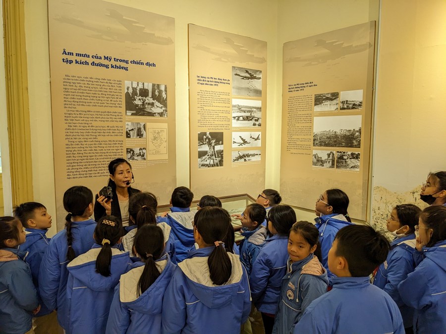 Các em được nghe các cô chú hướng dẫn viên của Bảo tàng Thành phố, giới thiệu về các hiện vật được trưng bày tại Bảo tàng và nghe giới thiệu về Chiến thắng Hà Nội – Điện Biên Phủ trên không - Bản hùng ca chiến thắng của ông cha ta. Sau đó các em được tự trải nghiệm tham quan các hiện vật tại Bảo tàng.