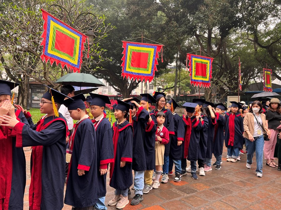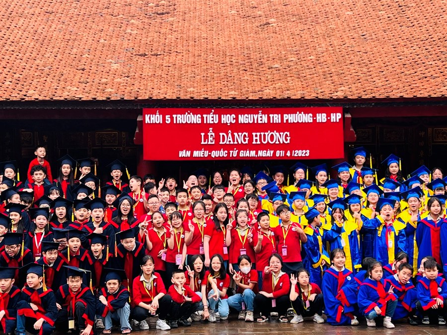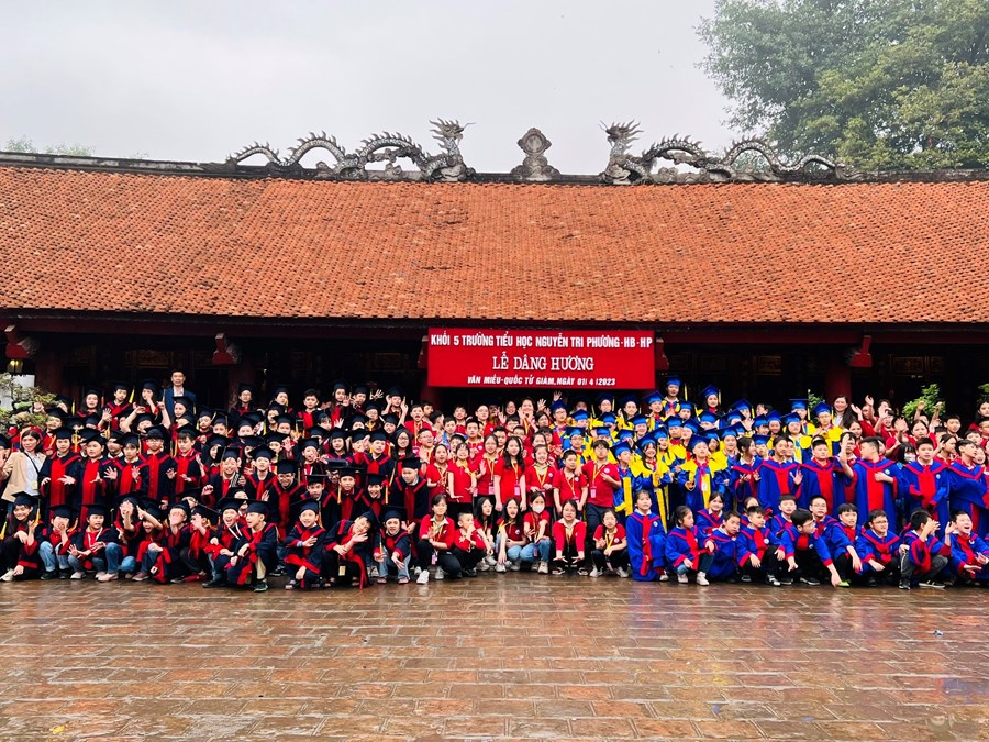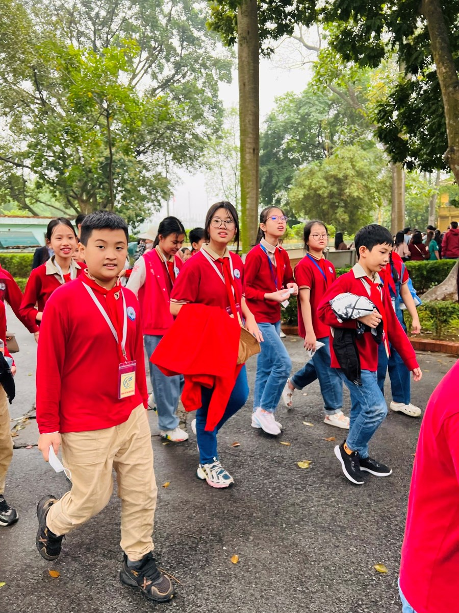 Sau khi vào lăng viếng Bác, đoàn tiếp tục di chuyển và làm Lễ dâng hương tại Văn Miếu - Quốc Tử Giám. Đây là một hoạt động ý nghĩa nhằm giáo dục các em tinh thần hiếu học, biết ơn các bậc hiền tài và quyết tâm phấn đấu để đạt được thành tích cao trong học tập, rèn luyện.