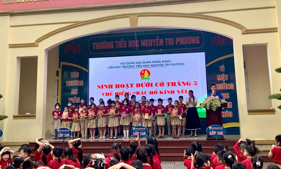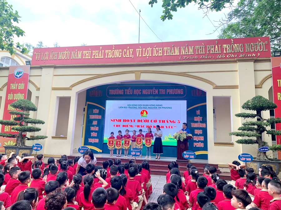 Trao huy hiệu Bác Hồ và phần thưởng cho 26 em Đội viên, Nhi đồng có thành tích xuất sắc trong phong trào “Học tập tốt, rèn luyện chăm” tháng 04/2023.