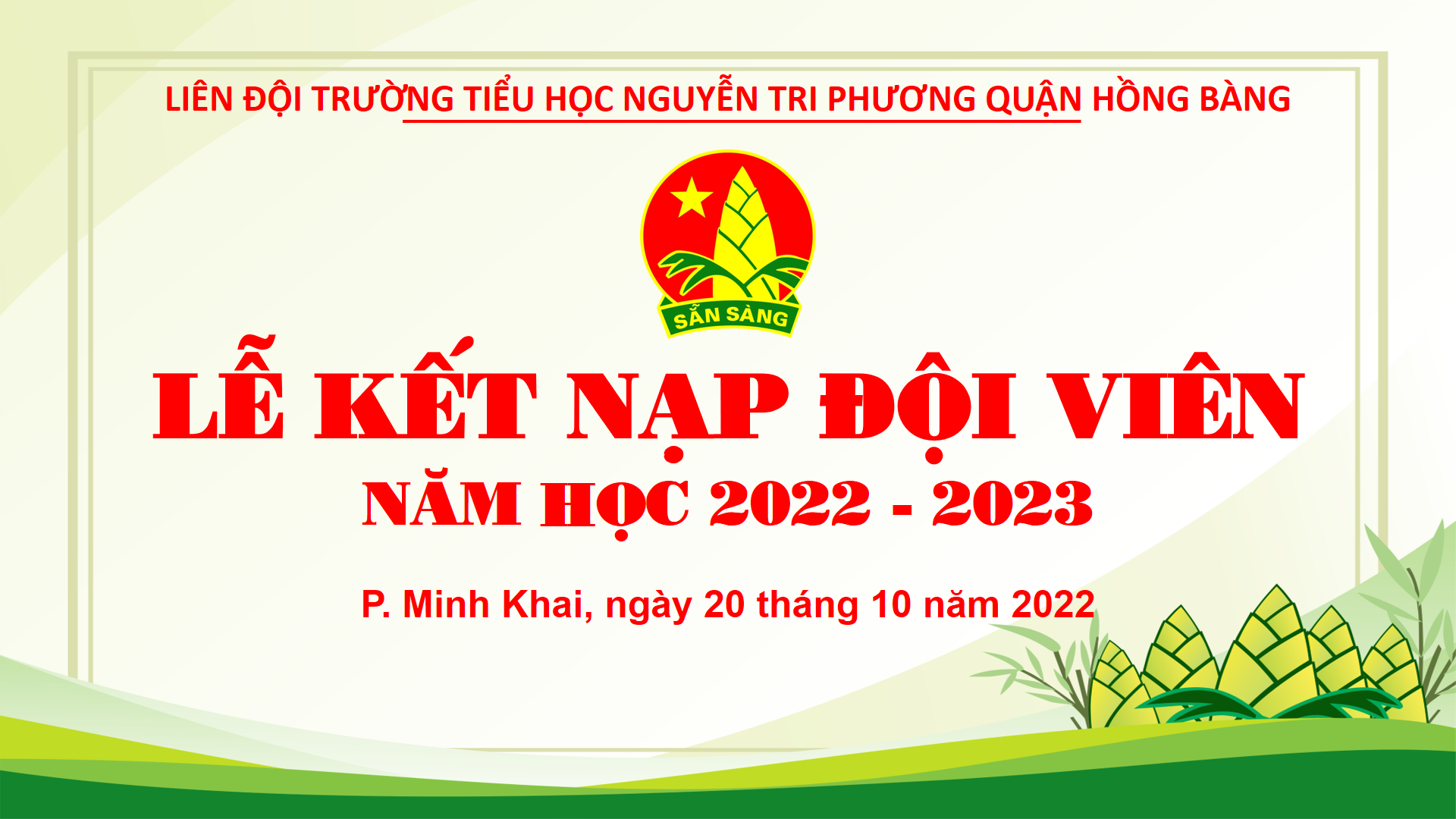 Được đứng trong hàng ngũ Đội Thiếu niên Tiền phong Hồ Chí Minh là vinh dự, niềm tự hào đối với các em. Vì từ hôm nay, các em được mang trên vai chiếc khăn đỏ thắm màu cờ Tổ quốc. Màu khăn đỏ như nhắc nhở các em phải phấn đấu vươn lên không ngừng để trở thành Đội viên tốt, xứng đáng là con ngoan trò giỏi - cháu ngoan Bác Hồ. Giây phút thiêng liêng này, sẽ là kỷ niệm đẹp tuổi học trò của các em.