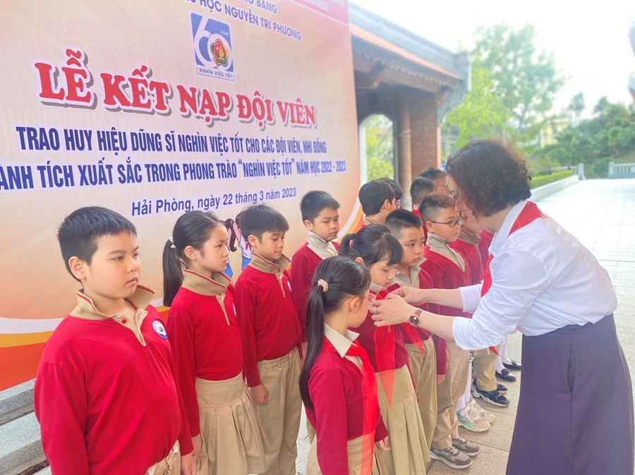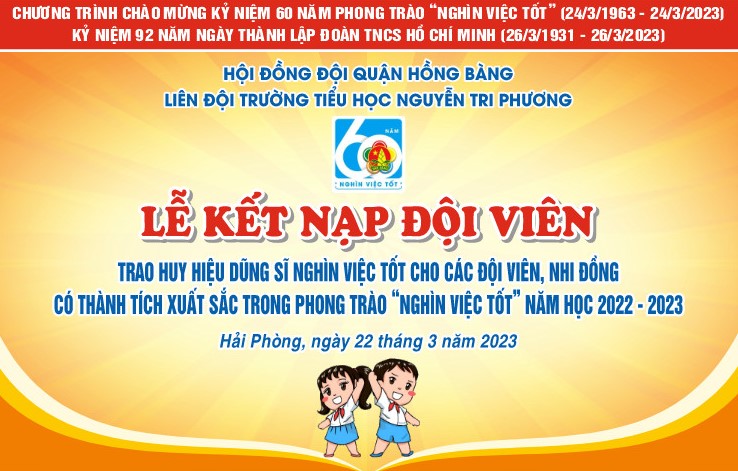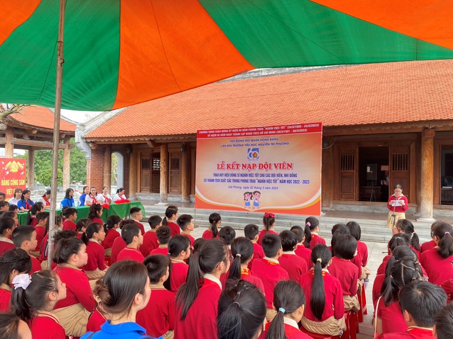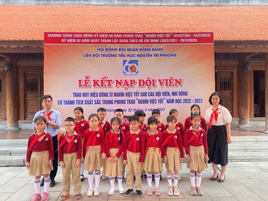Thực hiện chương trình Công tác Đội và phong trào thiếu nhi; Kế hoạch phát triển Đội viên của Liên đội năm học 2022 - 2023. Chiều ngày 22/3/2023 tại khu nhà tưởng niệm Lãnh tụ Nguyễn Đức Cảnh – xã An Đồng - huyện An Dương - TP Hải Phòng, Liên đội trường TH Nguyễn Tri Phương long trọng tổ chức “LỄ KẾT NẠP ĐỘI VIÊN” cho các em Nhi đồng thuộc lớp dự bị Đội viên khối 3.