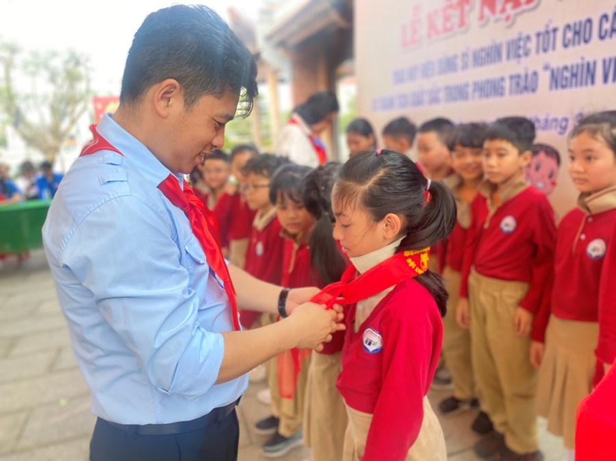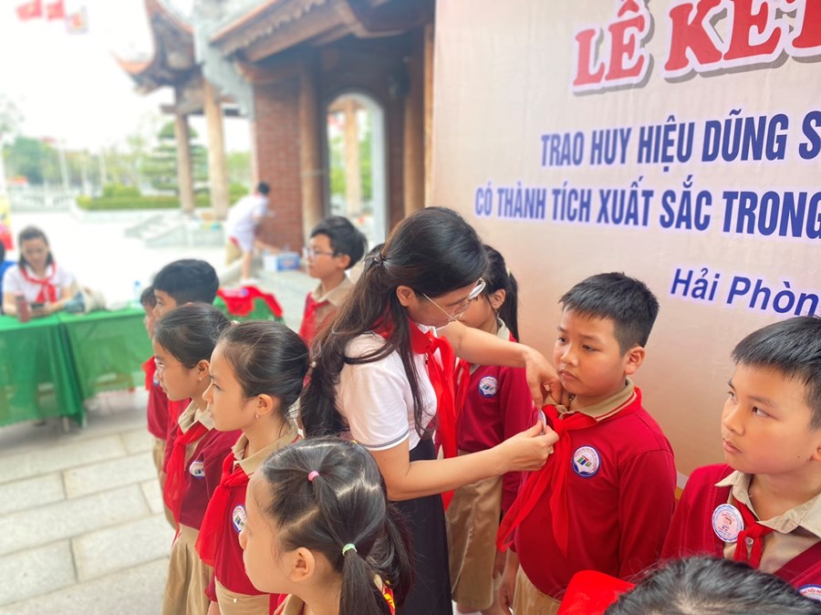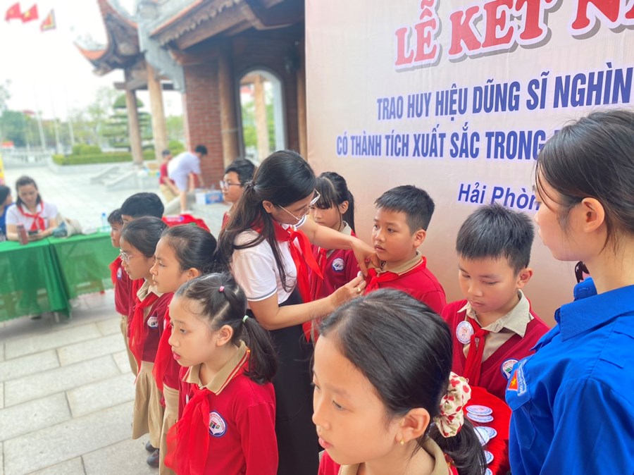 Ban phụ trách Liên đội trao tặng huy hiệu “DŨNG SĨ NGHÌN VIỆC TỐT” cho 60 em Đội viên, Nhi đồng có thành tích xuất sắc trong phong trào Nghìn việc tốt.