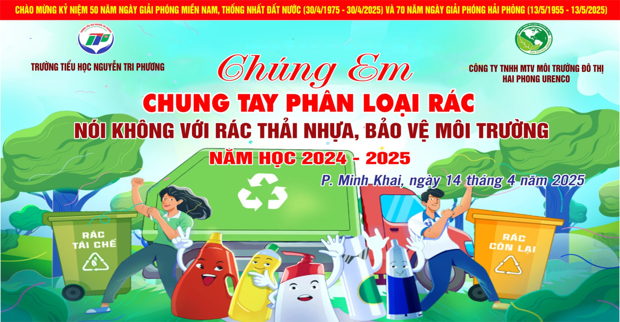 Sáng ngày 14/4/2025, trường Tiểu học Nguyễn Tri Phương phối hợp với Công ty TNHH MTV Môi trường Đô thị Hải Phòng đã tổ chức chương trình tuyên truyền “Chúng em chung tay phân loại rác - nói không với rác thải nhựa, bảo vệ môi trường”, mang đến cho học sinh những thông điệp sâu sắc và đầy cảm hứng về trách nhiệm bảo vệ môi t