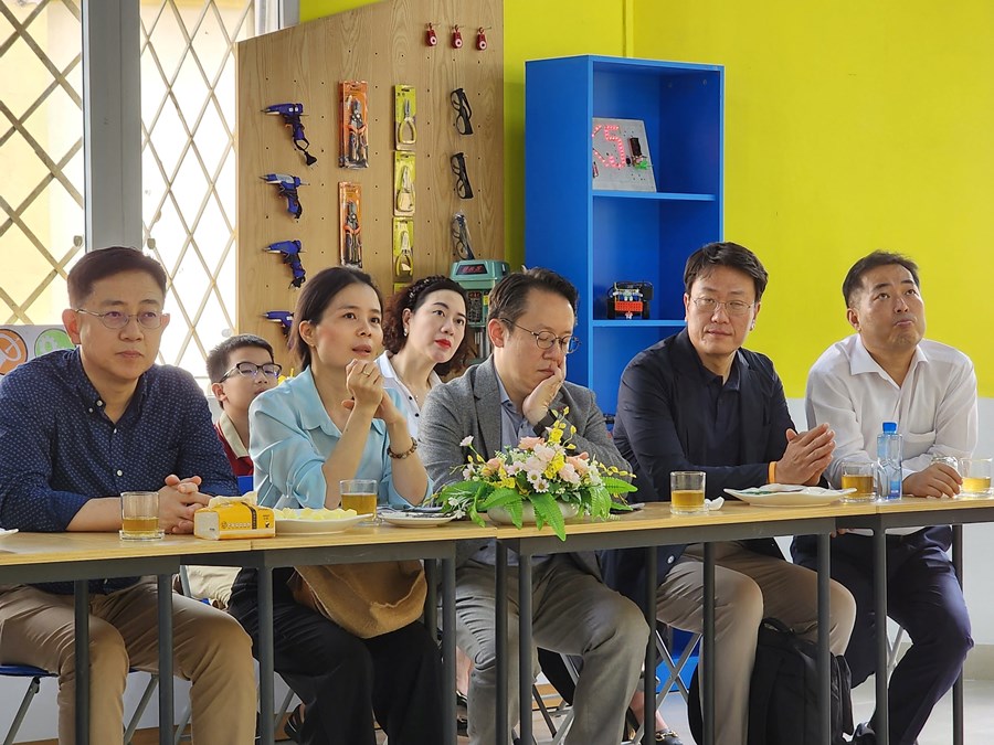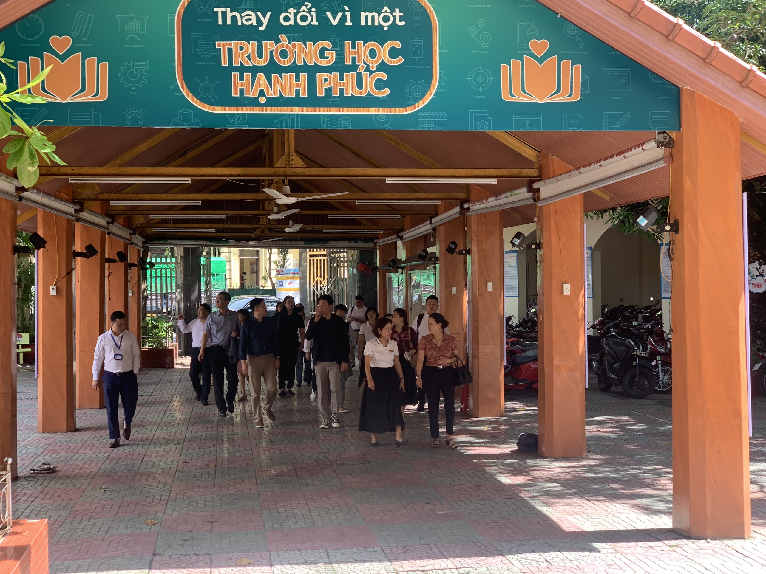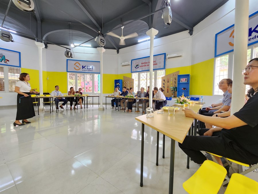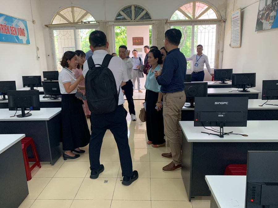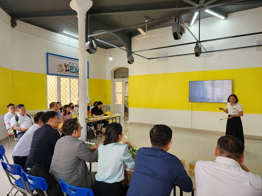 Tiếp đến, đoàn đã thăm quan các phòng chức năng (phòng STEM, phòng Tin học) các phòng học và cùng trao đổi để hướng tới xây dựng lớp học xanh-thông minh.