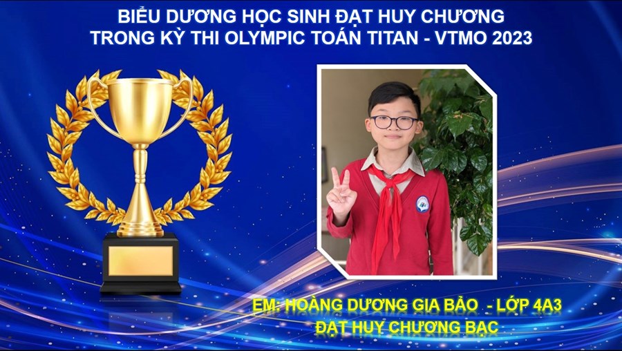 2. Em: Hoàng Dương Gia Bảo - Lớp 4A3 - Đạt Huy chương Bạc