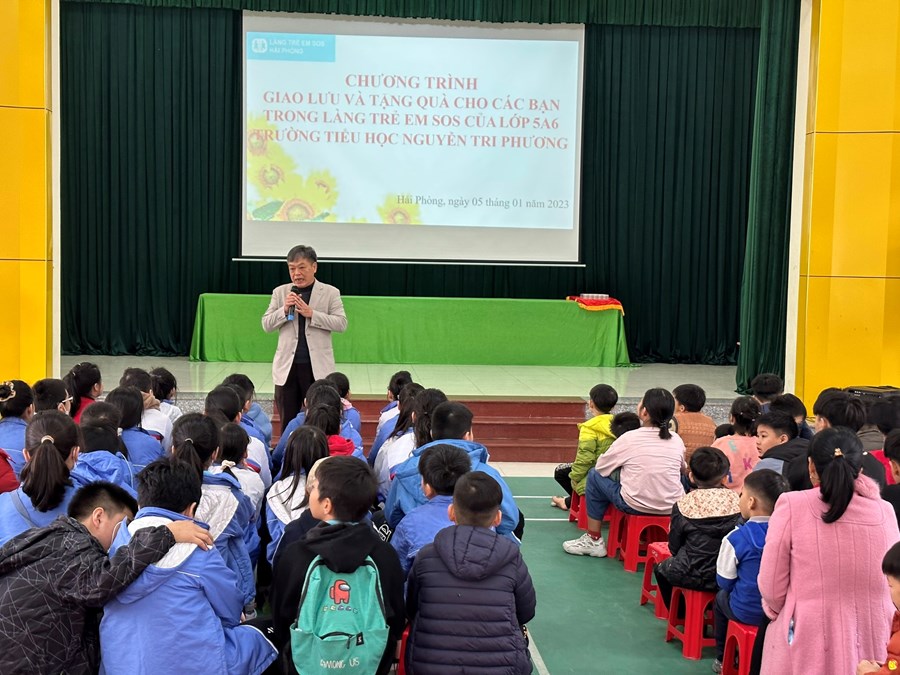Ngày 5/1/2023, thầy trò và phụ huynh lớp 5A6 đã thực hiện chương trình “Ấm tình mùa xuân” tại làng trẻ SOS Hải Phòng. Tại đây đoàn được đại diện làng trẻ giới thiệu về làng: hiện tại làng có 14 gia đình nuôi dạy 137 cháu mồ côi cha mẹ, bị bỏ rơi hoặc không may mất đi cha mẹ và 1 lưu xá thanh niên với 24 các em nam từ 14 tuổi, đặc biệt 14 gia đình đều được đặt tên các loài hoa. Bác đại diện làng phụ trách công tác giáo dục đã chia sẻ về hoàn cảnh và cuộc sống của các em. Qua đây học sinh thấy được các gia đình thật khác biệt với gia đình mình.Tuy không phải là anh chị em ruột thịt nhưng ngôi nhà đó lại có tình yêu thương của các mẹ, của anh chị em dành cho nhau. Thầy trò và phụ huynh thật xúc động trước tình cảm thiêng liêng này. Qua hoạt động đọng lại trong các em tình yêu thương, giúp đỡ các bạn cùng trang lứa, giúp đỡ những người có hoàn cảnh không may. Hoạt động từ thiện tặng quà đã minh chứng cho các em về giá trị thực của những bài học đạo đức mà các em đã học trên lớp.