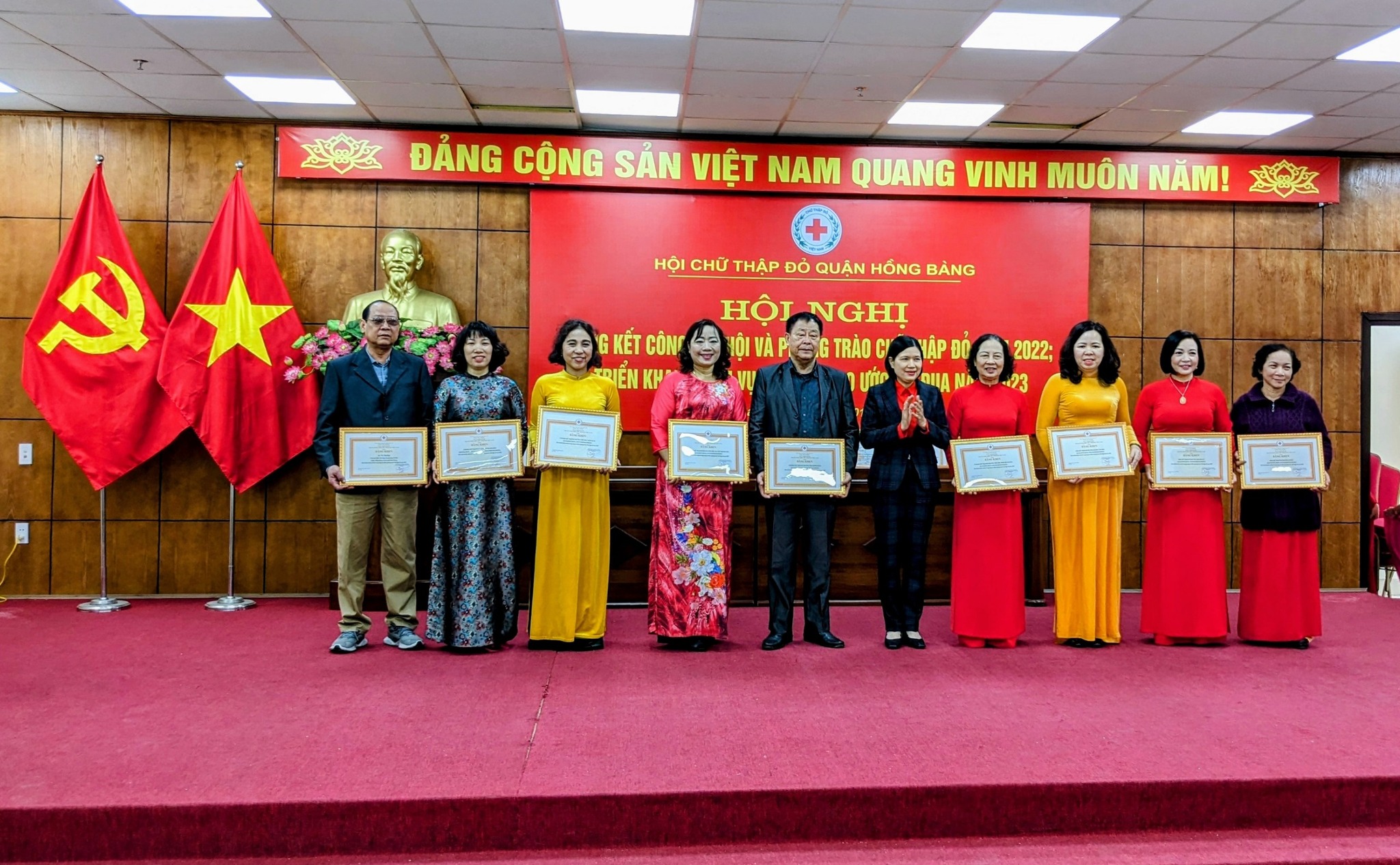 Sáng nay, ngày 05/01/2023. Tại hội nghị Tổng kết công tác hội và phong trào chữ thập đỏ năm 2022 của quận Hồng Bàng.