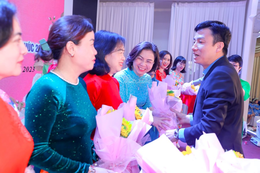 Tại chương trình LĐLĐ quận có 45 suất quà tặng cho các nữ cán bộ, giáo viên, người lao động của nhà trường là các phiếu mua hàng tại các gian bán hàng “Phúc lợi đoàn viên” do LĐLĐ thành phố tổ chức.