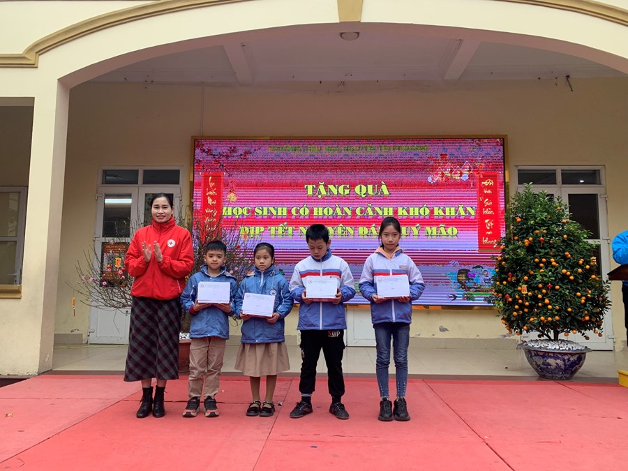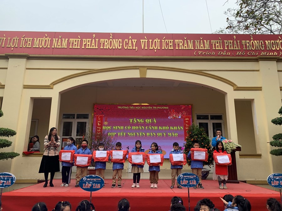 Tại chương trình nhà trường kết hợp cùng các cơ quan đoàn thể, các đơn vị thiện nguyện hỗ trợ tặng quà cho các em học sinh có hoàng cảnh khó khăn nhân dịp Tết Nguyên đán Quý Mão.