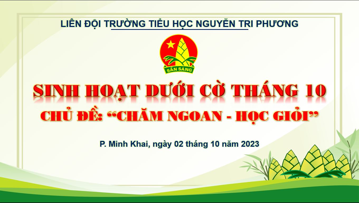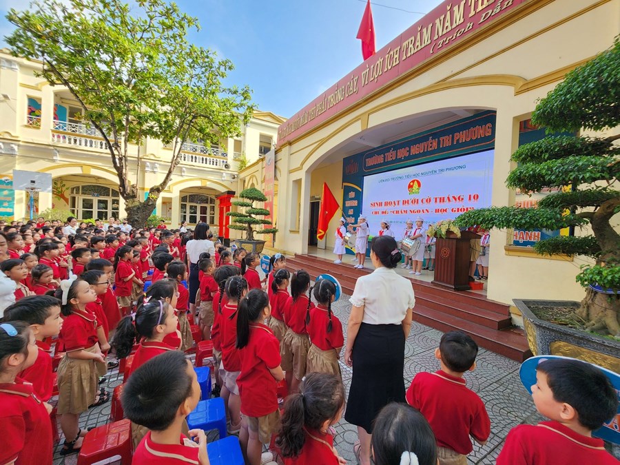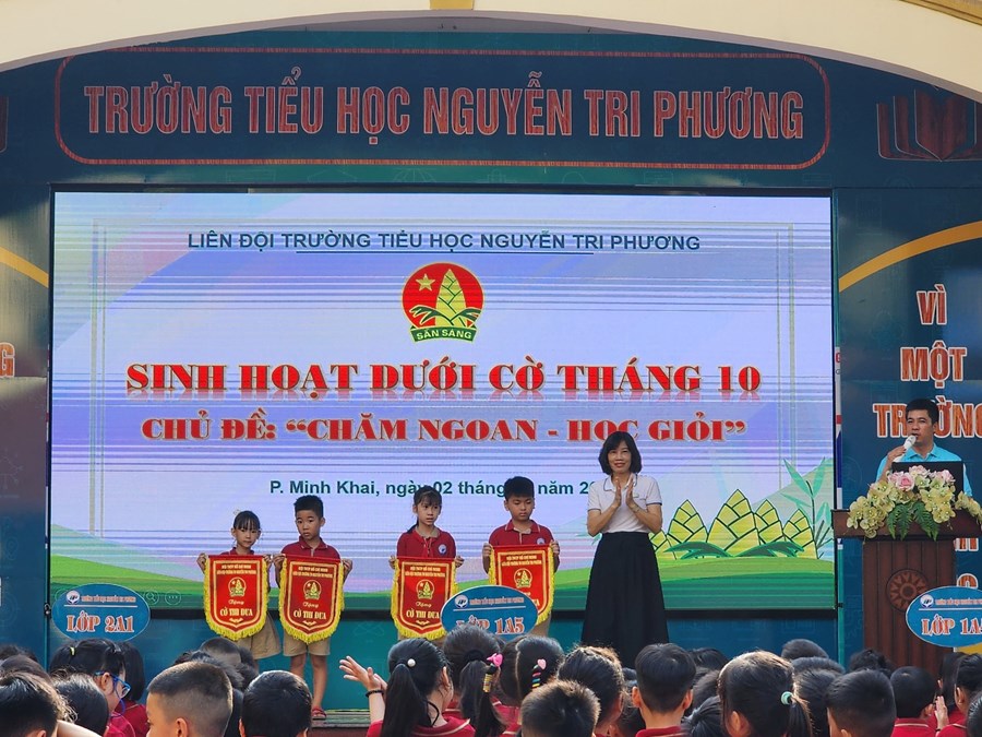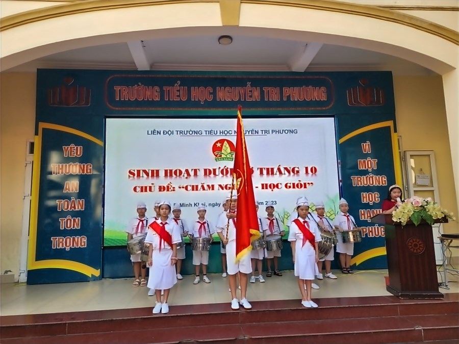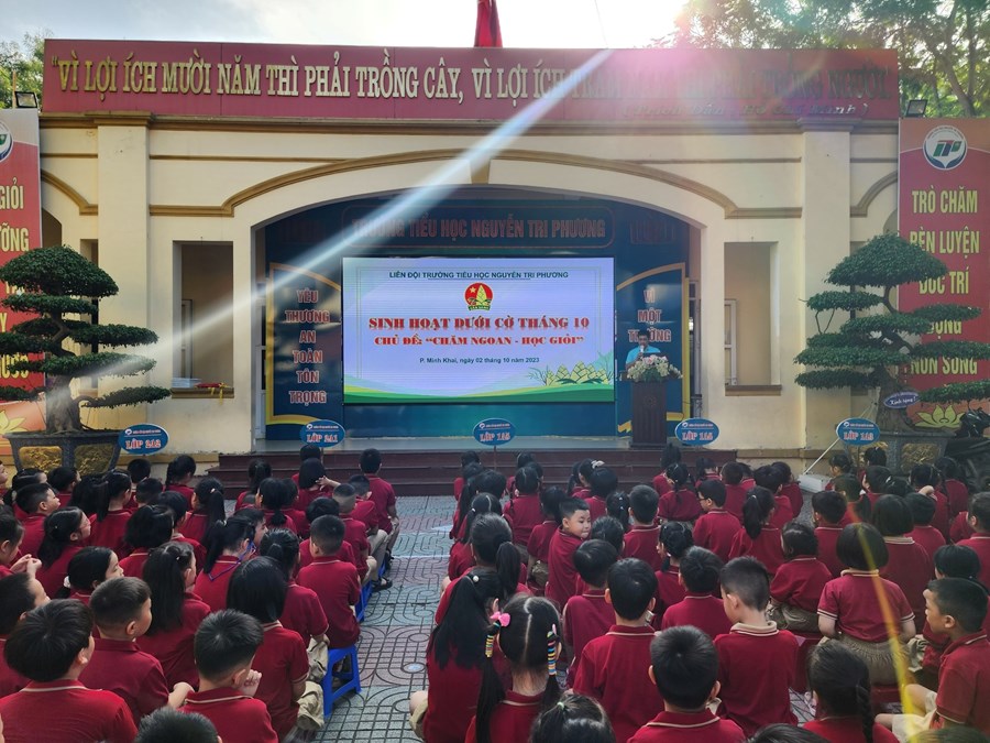 Tại buổi SINH HOẠT DƯỚI CỜ Ban phụ trách Liên đội trường Tiểu học Nguyễn Tri Phương đã biểu dương 24 em học sinh đã có thành tích vượt trội trong học tập và rèn luyện trong tháng 9.