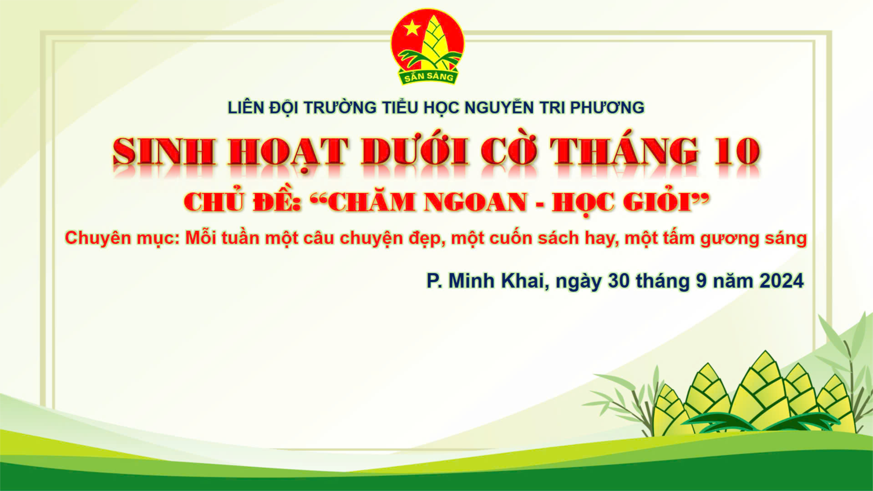 Được sự đồng ý của Ban giám hiệu nhà trường. Sáng thứ 2 ngày 30/9/2024, Ban phụ trách Liên đội trường TH Nguyễn Tri Phương đã tổ chức buổi SINH HOẠT DƯỚI CỜ cấp Liên đội tháng 10/2024.