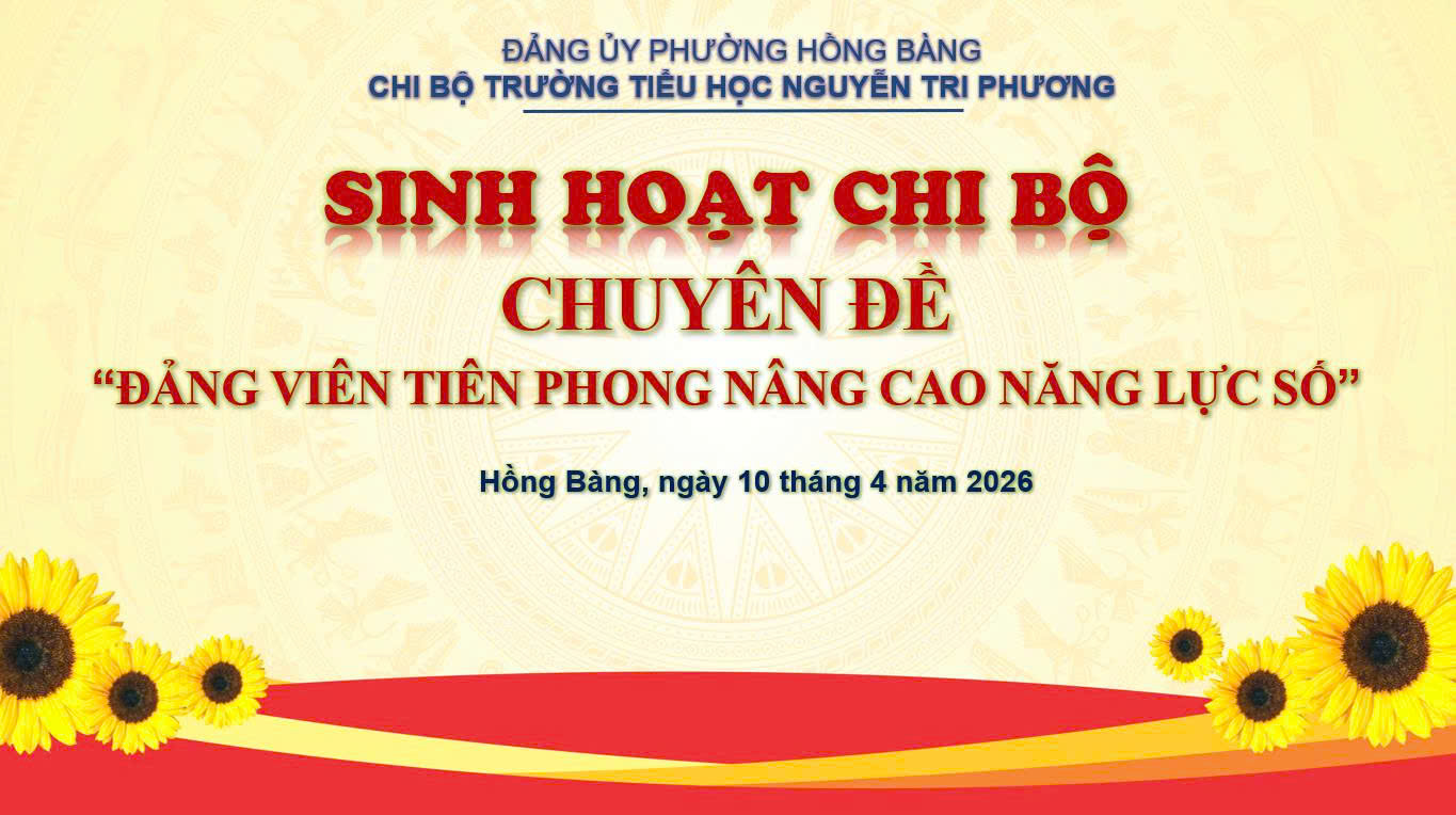 Ngày 10/4/2026, Chi bộ Trường Tiểu học Nguyễn Tri Phương đã tổ chức thành công buổi sinh hoạt chuyên đề với chủ đề: “Đảng viên tiên phong nâng cao năng lực số” - một nội dung thiết thực, mang tính thời sự và định hướng rõ nét cho giai đoạn phát triển mới.
