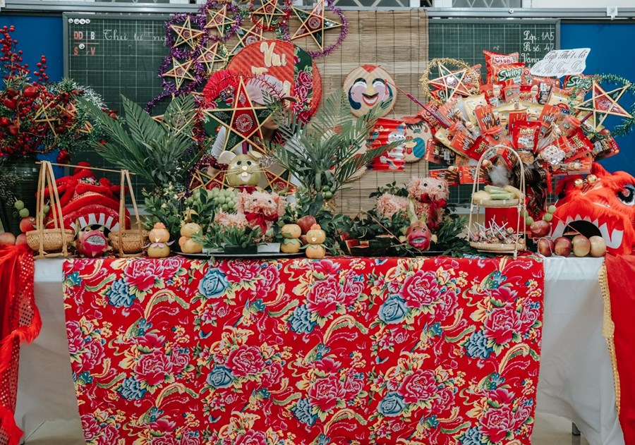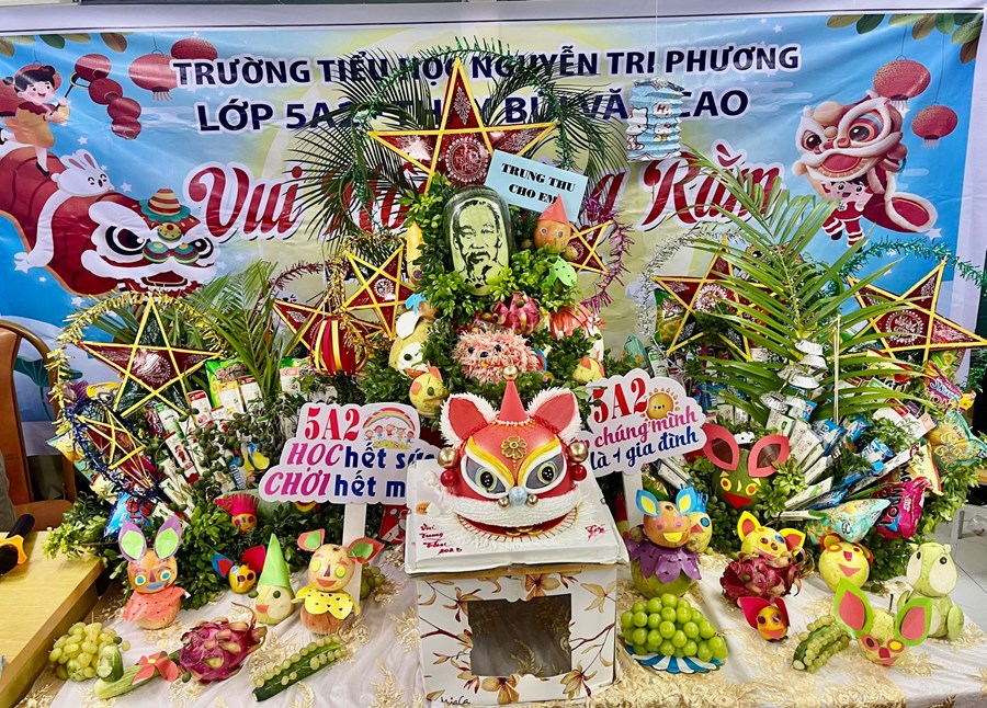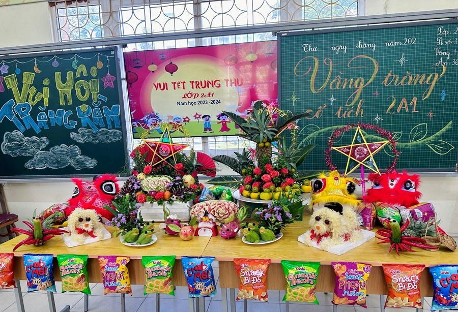 Nhằm tạo không khí ấm cúng, thân thiện. Các mâm cỗ trung thu của 24 lớp đã được phụ huynh các lớp cùng thầy cô chủ nhiệm và các bạn học sinh trang trí và trưng bày tại mỗi lớp. Đến bất cứ lớp nào, chúng ta cũng có thể bắt gặp sự sắp xếp, trang hoàng rất đẹp nào là lồng đèn, bánh kẹo, nào là sân khấu với một mâm trái cây được tỉa thành hình đủ loại các con vật nghộ nghĩnh. Tất cả được bày ra như một cung trăng thu nhỏ nơi có chị Hằng, chú Cuội.