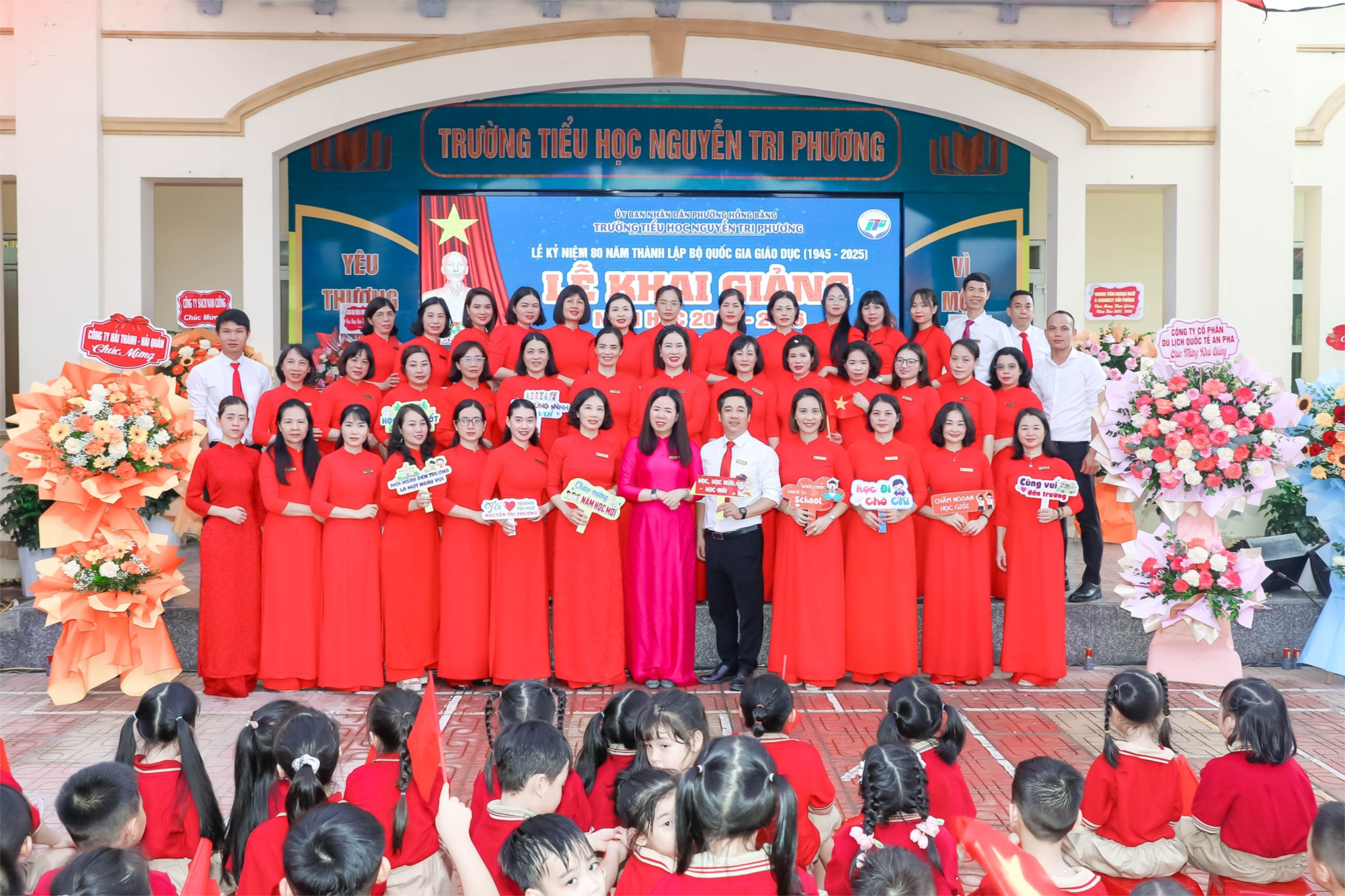 Ngay từ sáng sớm, sân trường Nguyễn Tri Phương đã ngập tràn sắc màu cờ hoa, rộn rã tiếng trống, tiếng nhạc. Trong dòng người náo nức, các thầy cô, phụ huynh và học sinh tề tựu đông đủ. Những gương mặt hồn nhiên của các em học sinh lớp 1 – dù còn đôi chút bỡ ngỡ – đã bừng sáng niềm tự tin trong vòng tay yêu thương của thầy cô và sự chào đón nồng nhiệt từ anh chị lớp trên.